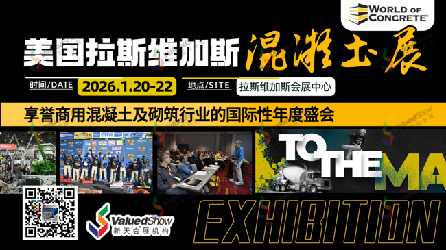 ???? 全球混凝土行业的年度盛宴,北美市场的黄金入场券!2026年美国拉斯维加斯混凝土世界博览会(World of Concrete, WOC)即将启幕,作为拥有50余年积淀、全球规模最大的混凝土及建筑机械专业展会,这里汇聚了行业顶尖资源、前沿技术与精准买家,是企业拓展国际版图、深耕商业合作的必参盛会。这份超全参展指南,助你高效备展、满载而归!